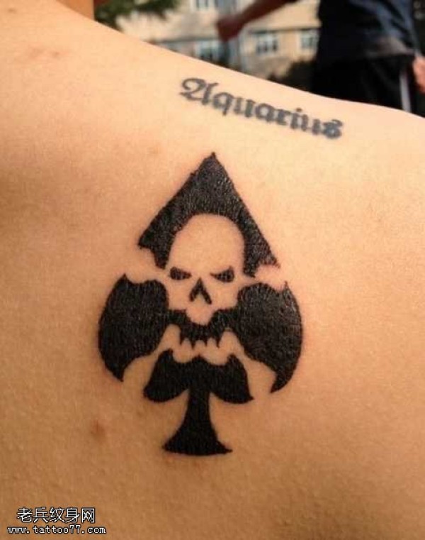 男人肩部扑克骷髅纹身图案