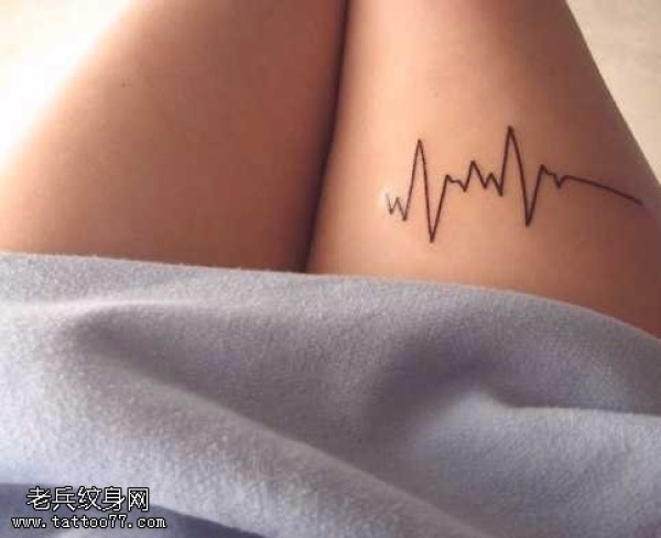 女生腿部心电图纹身图案