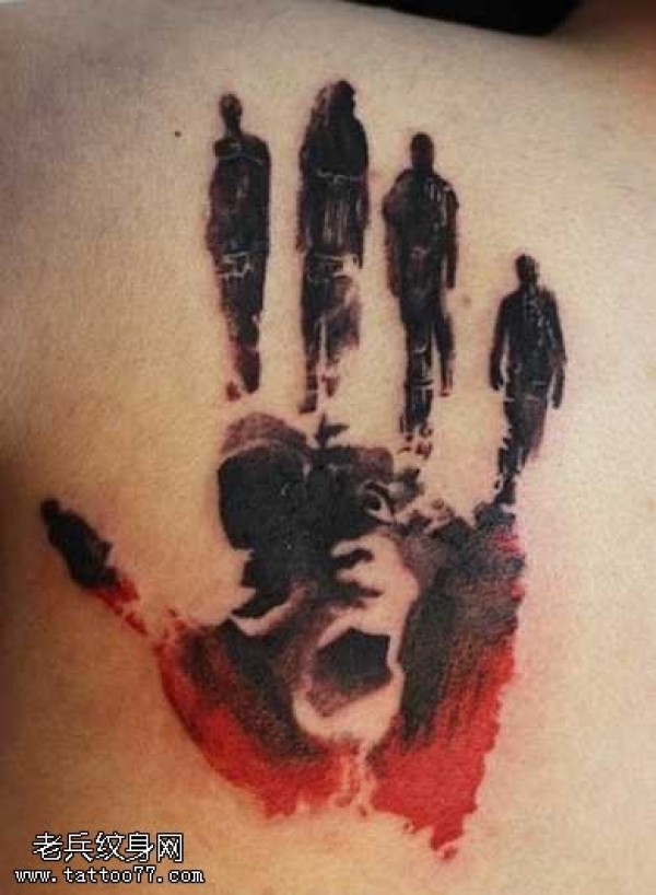男生肩部手掌抽象纹身图案