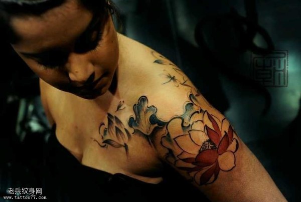女生肩花纹身_15张女性双肩对称的肩花纹身图案作品图片