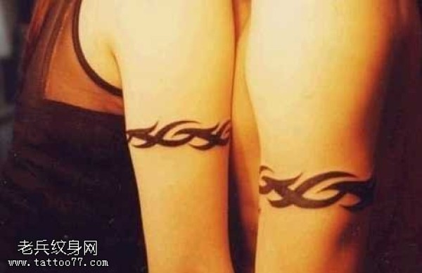 情侣手臂简单的图腾纹身图案