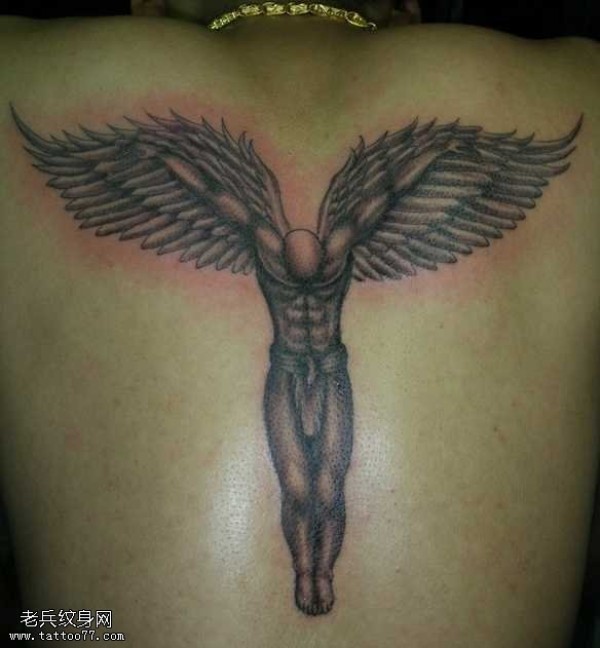 男士背部唯美的守护天使纹身图案