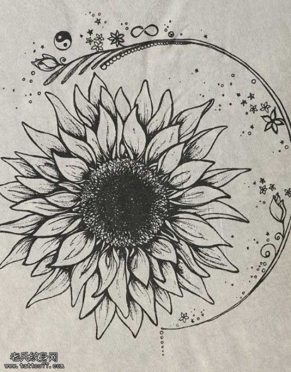 手稿漂亮好看的向日葵纹身图案