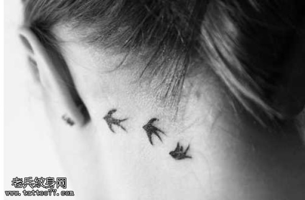 多款女生耳后黑色线条素描文艺小清新小图案纹身图案