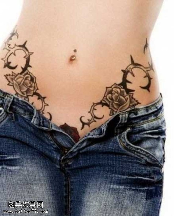 女性腰部莲花花纹刺青_腰部纹身图案大全_纹身图吧