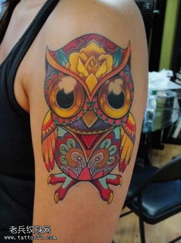 胳膊非常可爱的大雁猫头鹰纹身图案