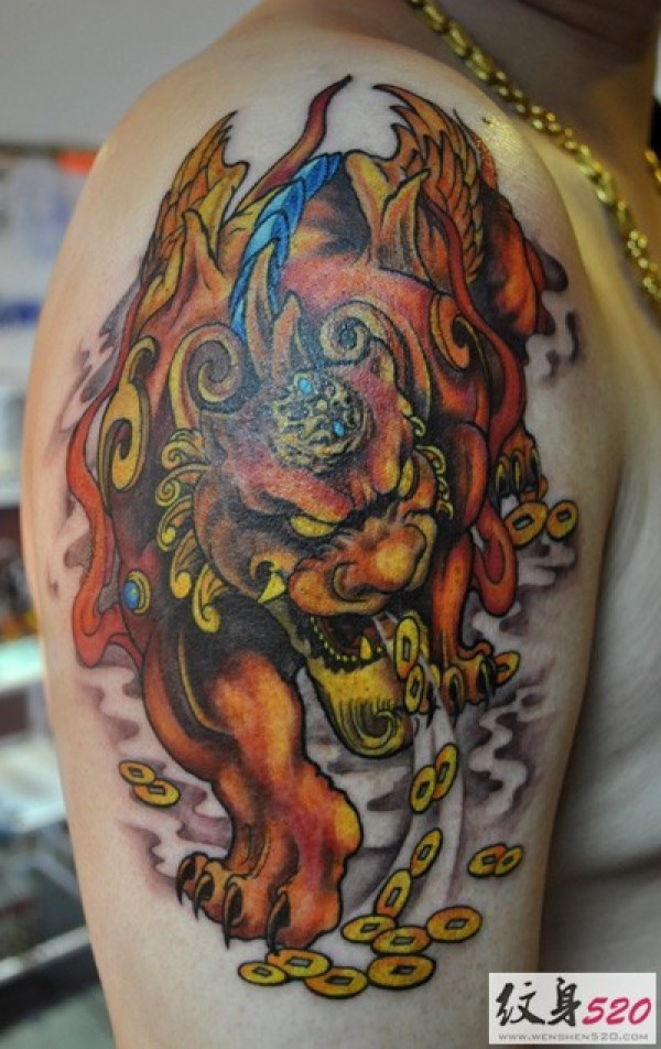 大臂招财貔貅纹身