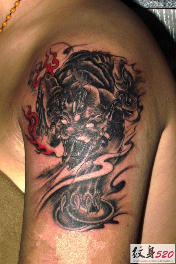 龙纹身手稿_一组老传统黑灰龙手稿纹身图案