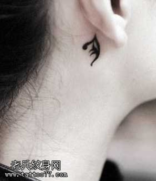 多款女生耳后黑色线条素描文艺小清新小图案纹身图案