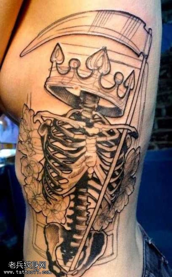 侧腰女骷髅刺青图案图片_骷髅纹身图案大全_纹身图吧