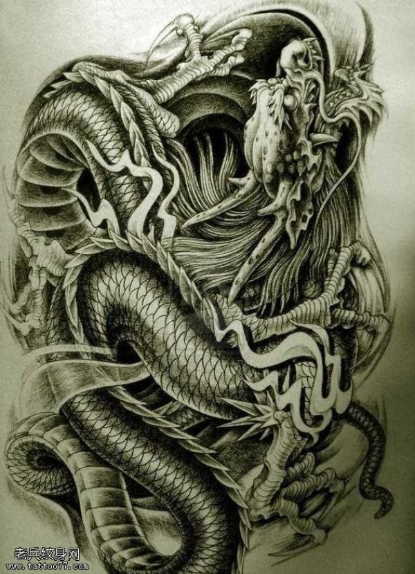 手稿一张大气的中国龙纹身图案