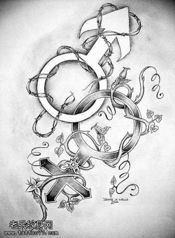 双子座纹身手稿_29张十二星座之双子座纹身图案手稿