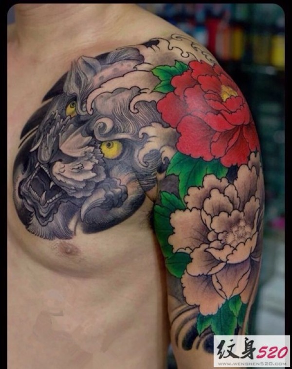 女生肩花纹身_15张女性双肩对称的肩花纹身图案作品图片