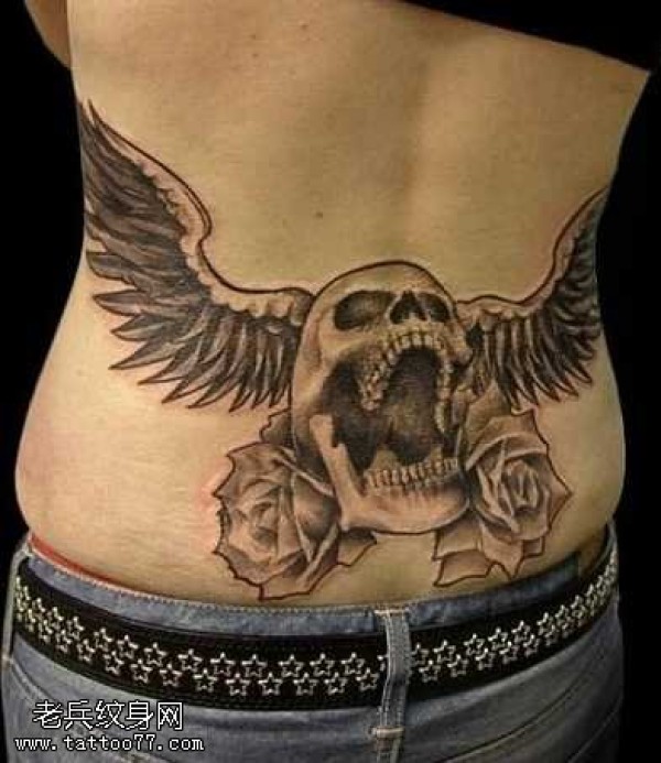腰部翅膀骷髅纹身图案