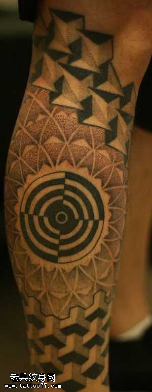 腿部点状图腾纹身图案