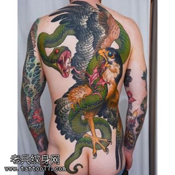 背部的蛇老鹰纹身图案