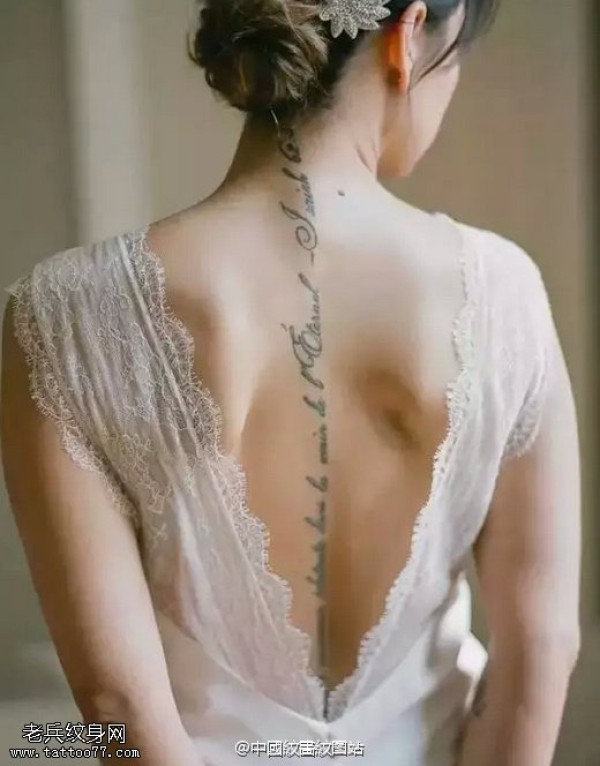 背部脊梁上的字符纹身图案