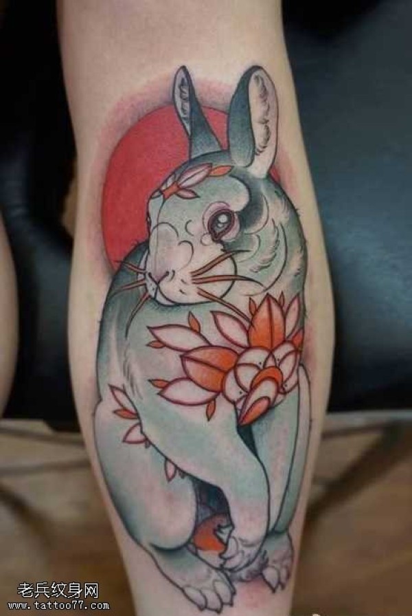 腿部兔子纹身图案