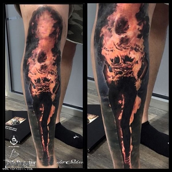 花腿纹身--一组大黑腿纹身图案作品欣赏