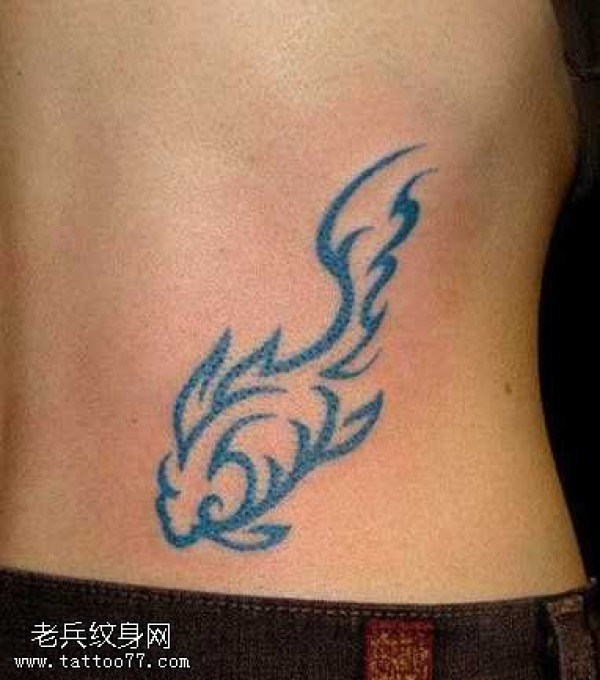 腰部创意鱼文身作品