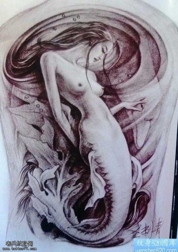 手稿传统美人鱼纹身图案