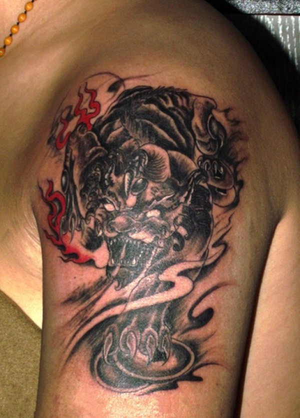 龙纹身手稿_一组老传统黑灰龙手稿纹身图案
