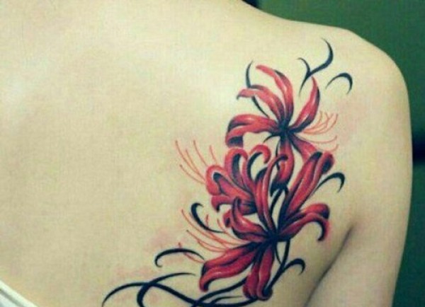 后肩唯美花藤英文图案图片_植物纹身图案大全_纹身图吧
