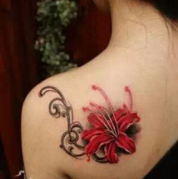 后肩唯美花藤英文图案图片_植物纹身图案大全_纹身图吧