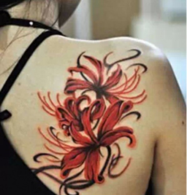后肩唯美花藤英文图案图片_植物纹身图案大全_纹身图吧