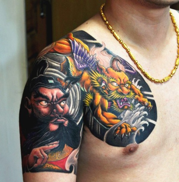 霸气过肩龙半甲纹身