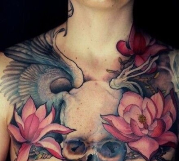 女性大花胸纹身_43张霸气漂亮的女性大花胸纹身图案作品