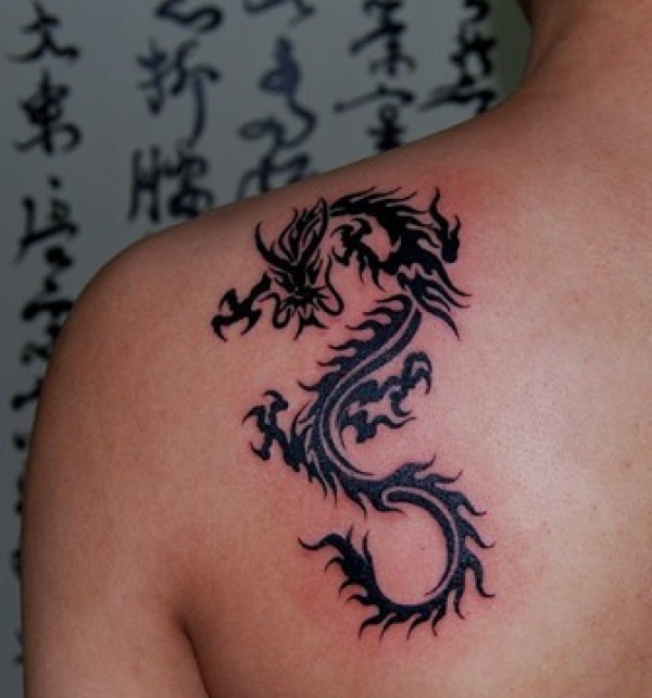 龙纹身手稿_一组老传统黑灰龙手稿纹身图案