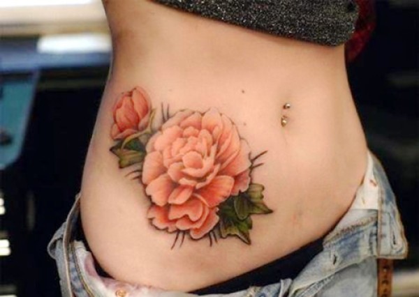 腰部漂亮诱人的鲜花纹身