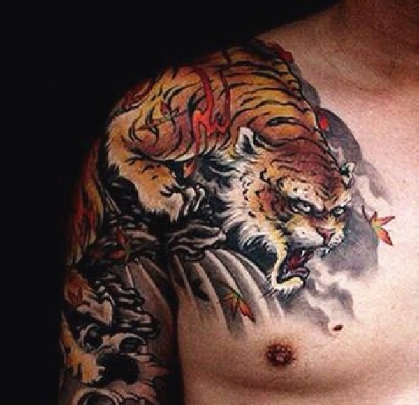霸气半胛老虎纹身_动物纹身图案大全_纹身图吧