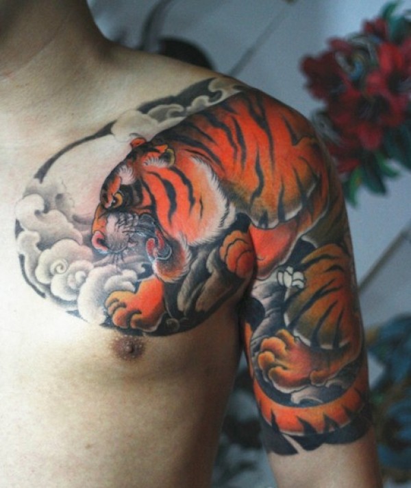 霸气半胛老虎纹身_动物纹身图案大全_纹身图吧
