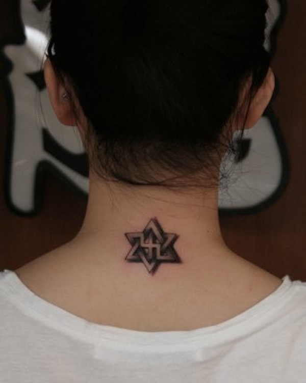 女生颈部漂亮的六芒星纹身图案