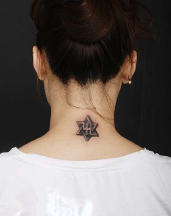 后颈部纹身小图--9张女生脖子后颈处的简约纹身图案
