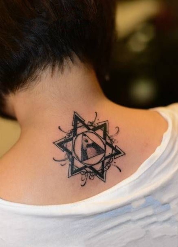 后颈部纹身小图--9张女生脖子后颈处的简约纹身图案