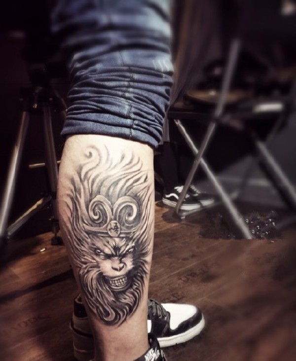 腿部霸气凶悍的斗战胜佛孙悟空纹身