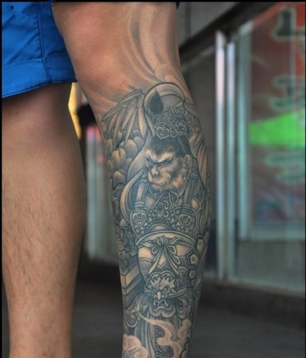 腿部霸气凶悍的斗战胜佛孙悟空纹身