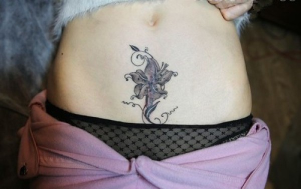 女性腰部莲花花纹刺青_腰部纹身图案大全_纹身图吧