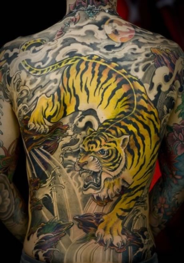 3D下山虎满背纹身图片