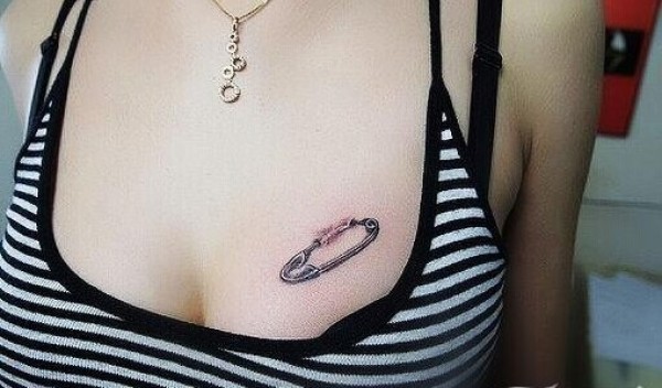 女生胸部清新小针纹身