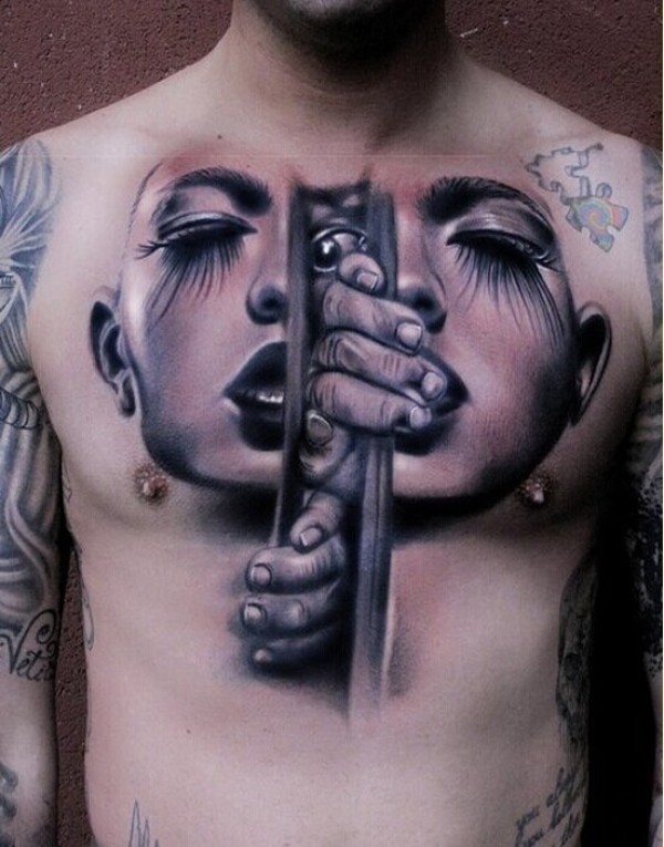 男生胸前经典的女性生殖器官纹身图案_胸部纹身图案大全_纹身图吧