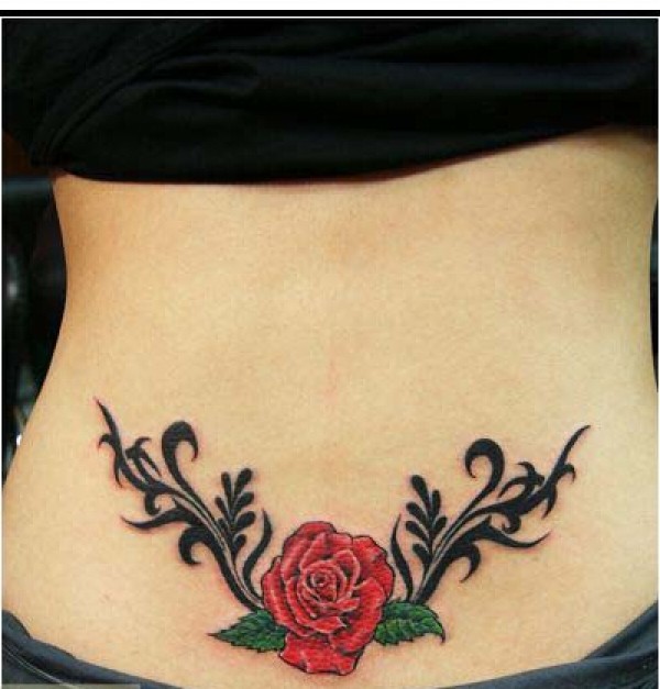 腰部精美时尚的玫瑰花纹身