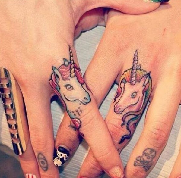 情侣手指独角兽纹身