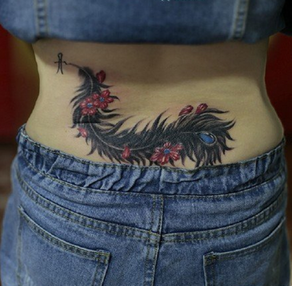 分享一款腰部时尚性感的蝶恋花纹身图案_腰部纹身图案大全_纹身图吧