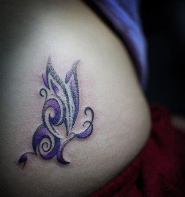 靓女腰部前卫精美的图腾蝴蝶纹身图案