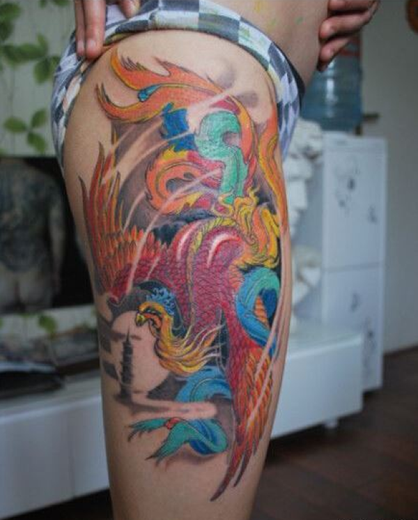 传统花腿纹身--18张传统风格的大花腿纹身图案作品