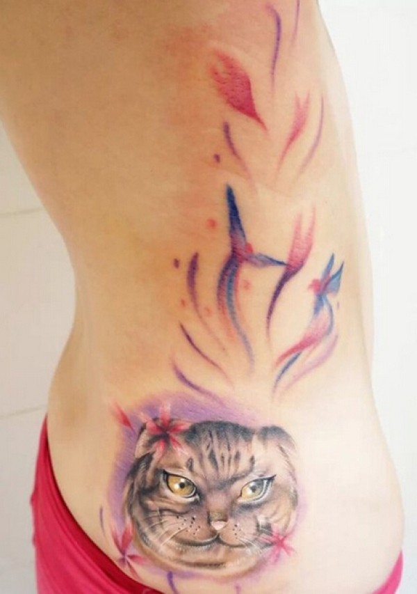 腰上可爱的喵星人纹身图案